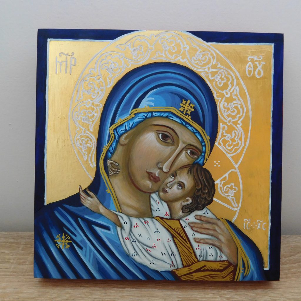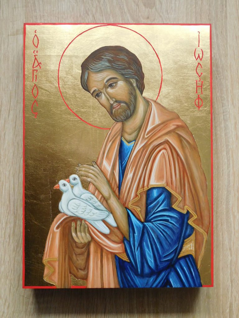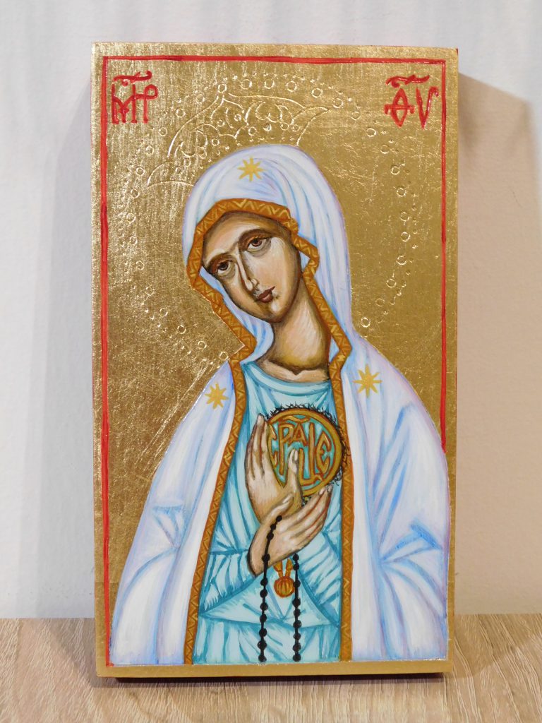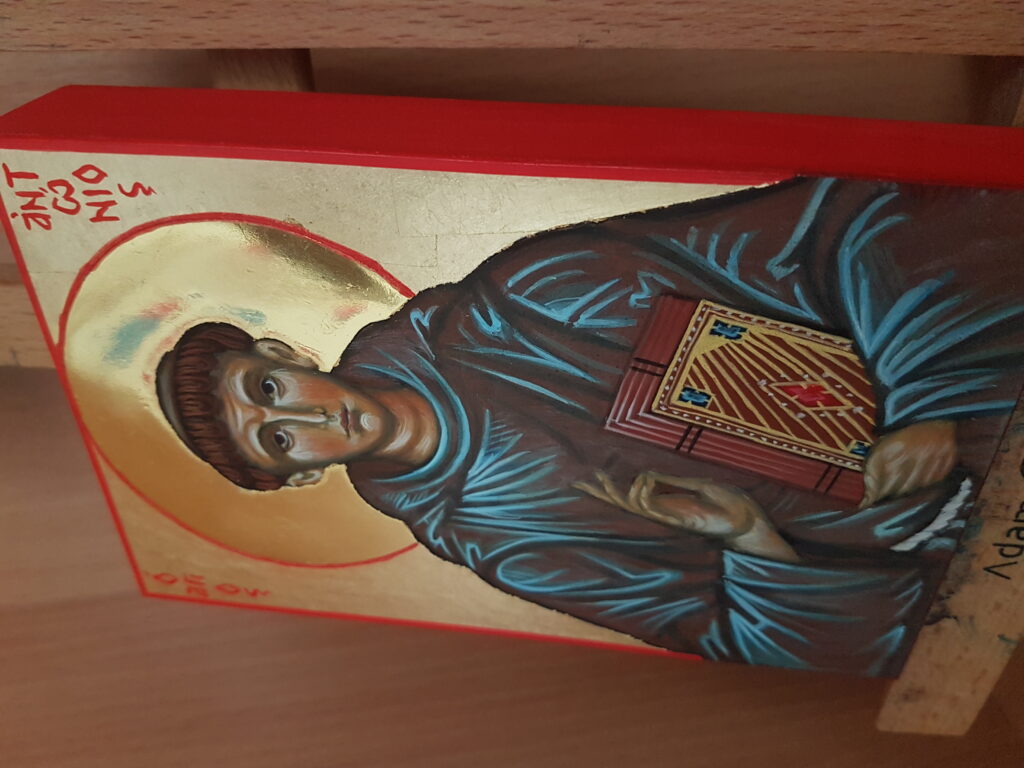 Piszę ikony również na zamówienie, w najróżniejszych wielkościach, z użyciem wybranych przez zamawiającego materiałów.