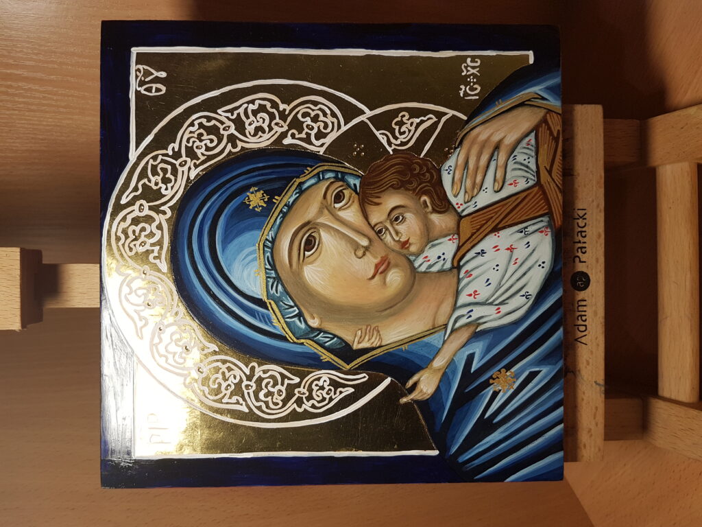 W 2014 r. miałam przyjemność rozpocząć wyjątkową przygodę z ikonopisaniem. Za sprawą kursu zorganizowanego we współpracy Centrum Kultury w Niepołomicach oraz Pracowni Ikonopisania i Pozłotnictwa K.J. Kula z Częstochowy mogłam zdobyć wiedzę z zakresu teorii oraz praktyki powstawania ikony według tradycyjnych technik. Wyciszająca, opatrzona modlitwą praca przynosi efekty, które mogę zaprezentować na fotografiach poniżej.